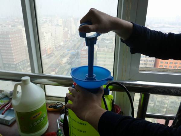 我們知道,空調(diào)室外機(jī)一般安裝位置距窗外不遠(yuǎn),在清洗的時(shí)候需要用一個(gè)類似打農(nóng)藥用的噴霧器,里面裝上清洗劑,然后手動(dòng)加壓,直接噴撒即可。一般的噴霧器加上噴霧桿,長(zhǎng)度都在2米以上,因此人站在室內(nèi)就可以直接進(jìn)行室外機(jī)清洗.這和高度沒(méi)有關(guān)系,操作人員根本無(wú)須高空作業(yè).清洗起來(lái)也很容易。我們配送的清洗工具里面有專業(yè)針對(duì)外機(jī)清洗的。